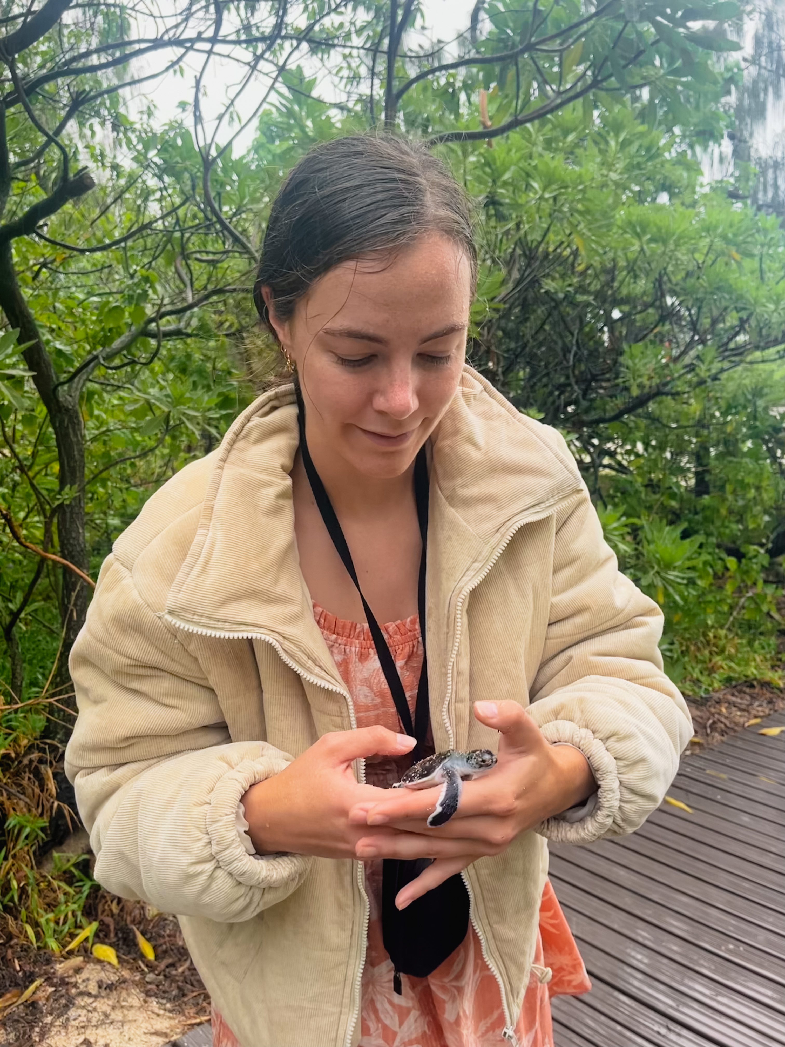 Nadat Julian, het broertje van Lisanne was uitgezwaaid op de luchthaven, zijn wij met de ouders van Lisanne naar de ferry terminal van Heron Island gegaan. Tijdens het inchecken werd ons verteld dat we reispilletjes moesten kopen, omdat de bootrit naar het eiland heel onstuimig zou worden vanwege het weer. Helaas was bij het winkeltje alles uitverkocht, maar wij dachten (op Erica na) dat het wel mee zal vallen. Dat was dus niet het geval, want al na een half uur grepen meerdere mensen naar het kotszakje, waaronder Marit en Steven die meerdere keren hier gebruik van hebben gemaakt. Uitgerekend Erica had het minste last en Lisanne kon het nog maar net allemaal aan. Na een rit van 2 uur (wat veel langer aanvoelde dan twee uur) kwamen we aan op het kleine eiland. Het eiland is zo klein dat je binnen een half uur een rondje eromheen kunt lopen. Op het eiland staan een onderzoekscentrum en een resort waar wij één nachtje geboekt hadden. Op het eiland zijn we wezen snorkelen en hebben we veel schildpadden gezien! Erica zat lekker met haar strandhanddoek op het strand, maar dat duurde niet lang want er viel zomaar een vogel uit de lucht dood naast haar neer (wij zagen dit een dag later opnieuw gebeuren boven het water). Op het eiland zijn namelijk heel veel vogels. Steven had de middag doorgebracht op bed, om nog bij te komen van de boottocht. Helaas regende het de volgende ochtend keihard, waardoor onze snorkeltoer niet door kon gaan. We waren al wel vroeg op (6:00 uur) en liepen naar de pier. Hier zagen we allemaal baby schildpadden van het strand naar het water schuivelen. Normaal gesproken is het hatching seizoen tot mei en wij waren er half mei dus we hadden geluk! Helaas hadden we ook iets minder leuks gezien want een baby schildpadje die in het water zat werd zo meegenomen door een vogel! Toen wij terug liepen zagen we een vogel met een schildpad in zijn snavel. Na een korte achtervolging liet hij hem los, heeft Marit het baby schildpadje opgepakt en zijn we snel naar de zee gerend om hem daar te bevrijden. Helaas duurde het goede gevoel dat we hem gered hadden maar kort, want eenmaal weer in de zee werd het schildpadje weer door een vogel meegenomen! In de middag hebben we de boot weer terug genomen naar vaste land, wat dit keer beter verliep dankzij de reispilletjes van het resort.