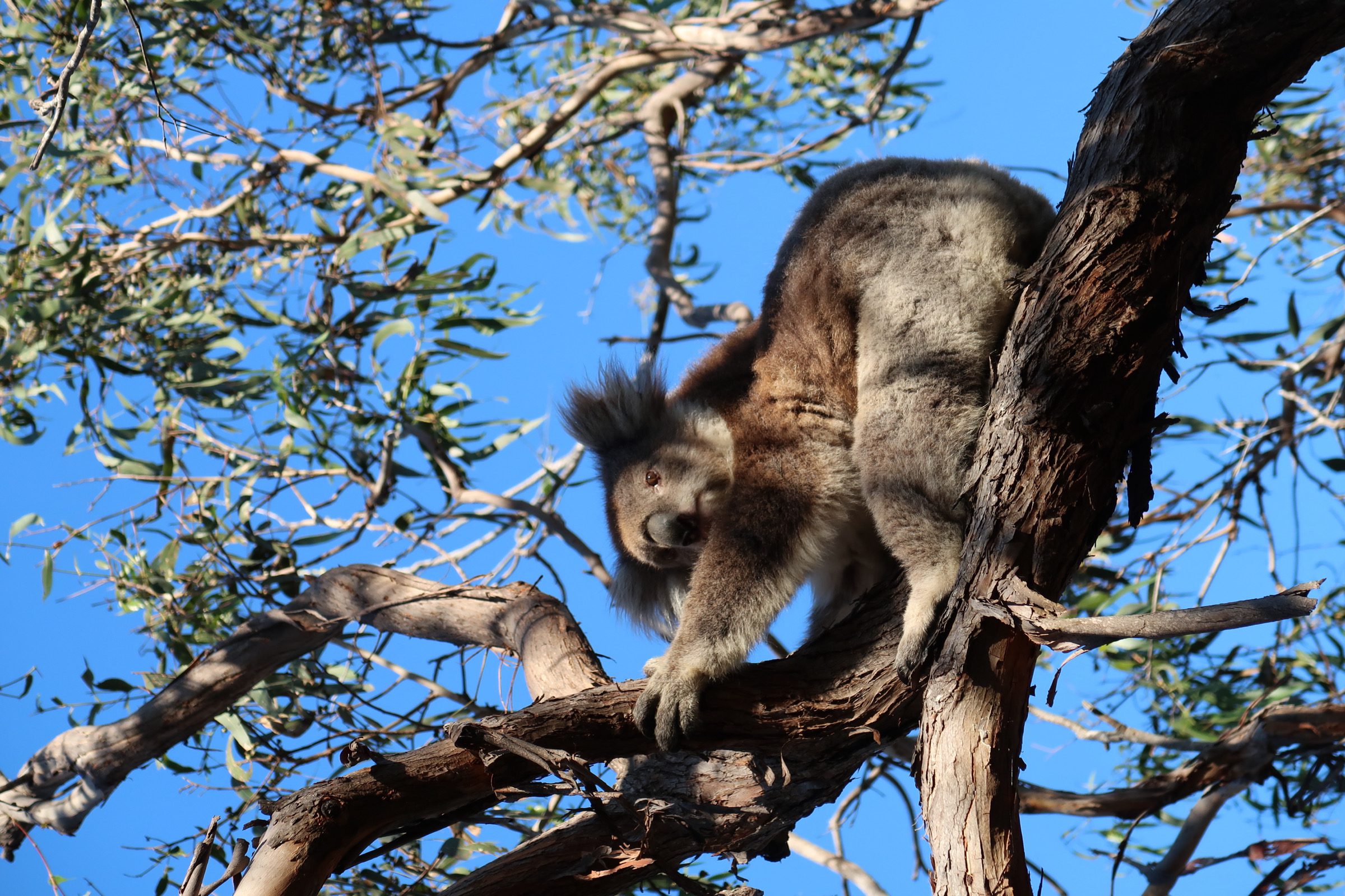 Op onze lijst wat we nog heel graag eens wilden zien stond een baby koala op de rug van zijn of haar moeder. En dat konden we afvinken op Raymond Island! Hier gingen we namelijk met een veerbootje van maar 2 minuten naar het eiland waar we de koala trail gelopen hebben. Hier hebben we heel veel koala’s gespot, waaronder dus een baby koala! Onze dag kon niet meer stuk.
