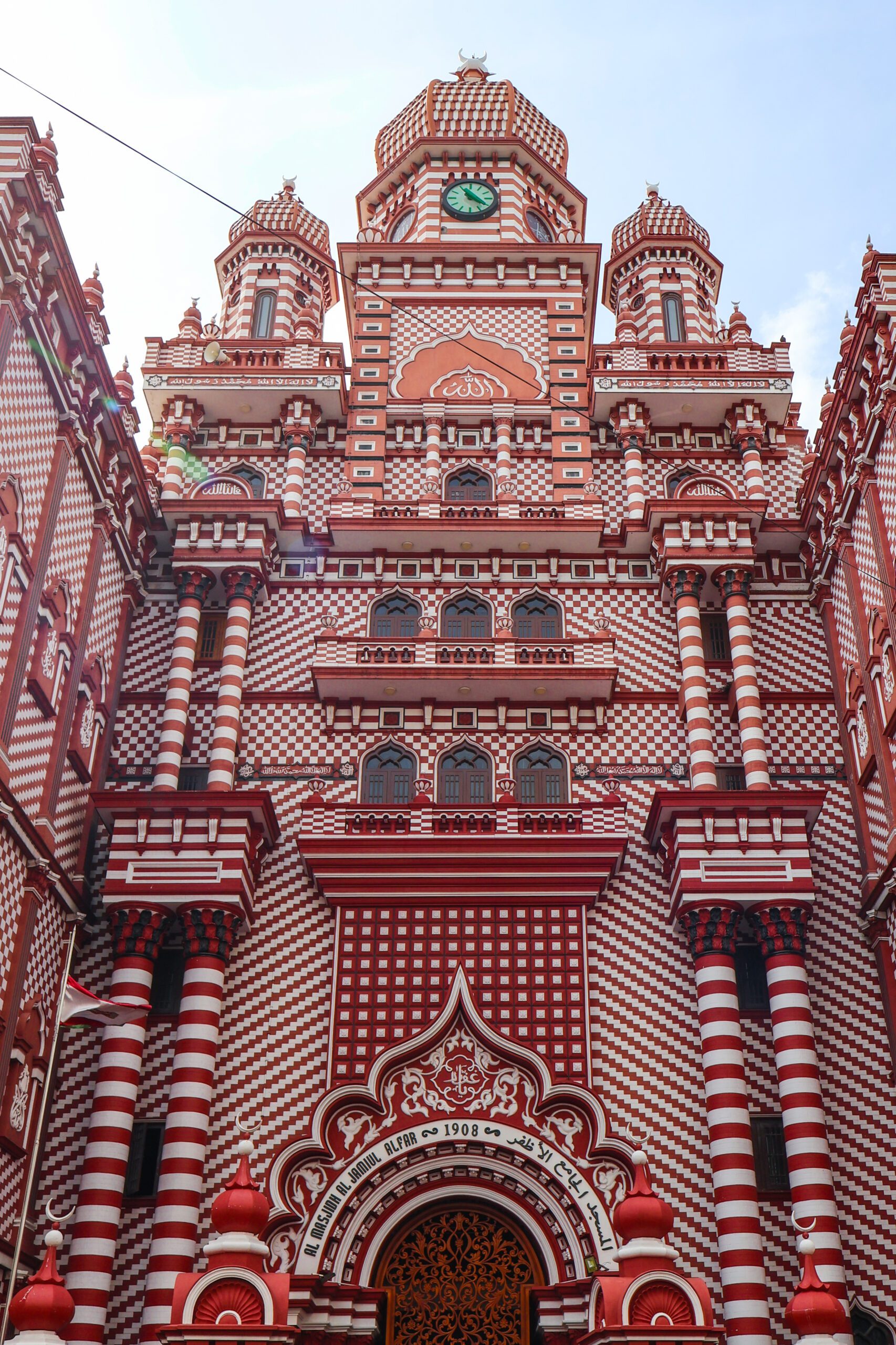 De Jami-Ul-Alfar Moskee, ook wel de ‘Rode Moskee’ genoemd, is een van de meest opvallende gebouwen in Colombo. Gelegen in de drukke wijk Pettah, valt de moskee meteen op door haar unieke rood-witte strepen. Dit gebouw uit 1909 is zowel een belangrijke gebedsplek als een prachtige bezienswaardigheid voor toeristen. De bijzondere mix van bouwstijlen en kleurrijke minaretten maken het een geweldige plek voor foto’s. Als je de moskee bezoekt, zorg er dan voor dat je respectvolle kleding draagt. De Jami-Ul-Alfar Moskee is zeker een must-see in Colombo!