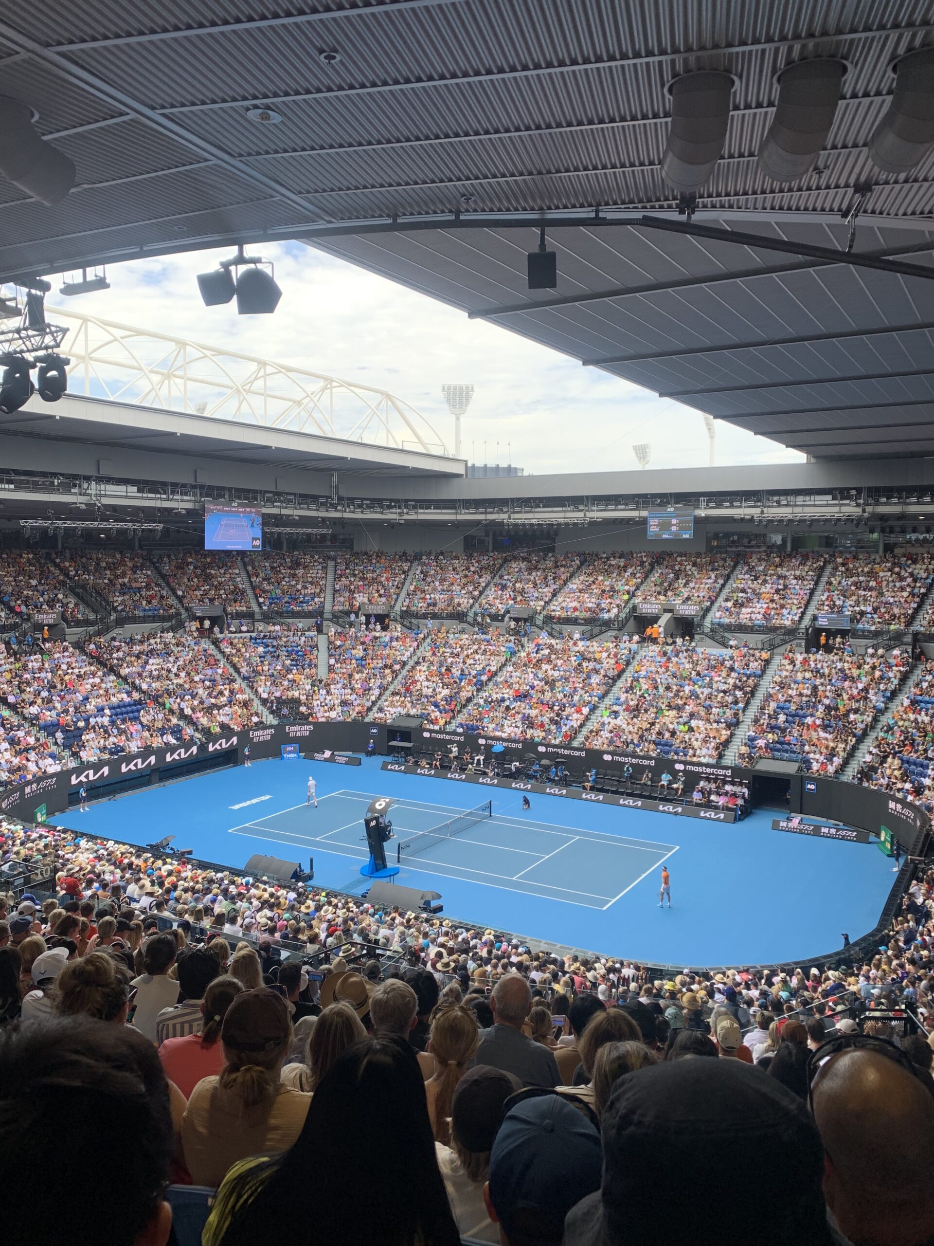 Wij hadden allebei nog nooit een tennis wedstrijd gezien tot we naar de Australian Open (AO) gingen en waren gelijk verkocht van dit leuke spelletje en sfeer die eromheen hangt. Het is het eerste grandslamtoernooi van het seizoen en wordt gespeeld in Melbourne Park. Het evenement vindt elk jaar in januari plaats en je kunt verschillende soorten kaarten kopen. Wij zijn er zelf twee dagen geweest en hebben toen kaarten gekocht voor de Rod Laver Arena waar we o.a. Rafael Nadal hebben zien spelen.