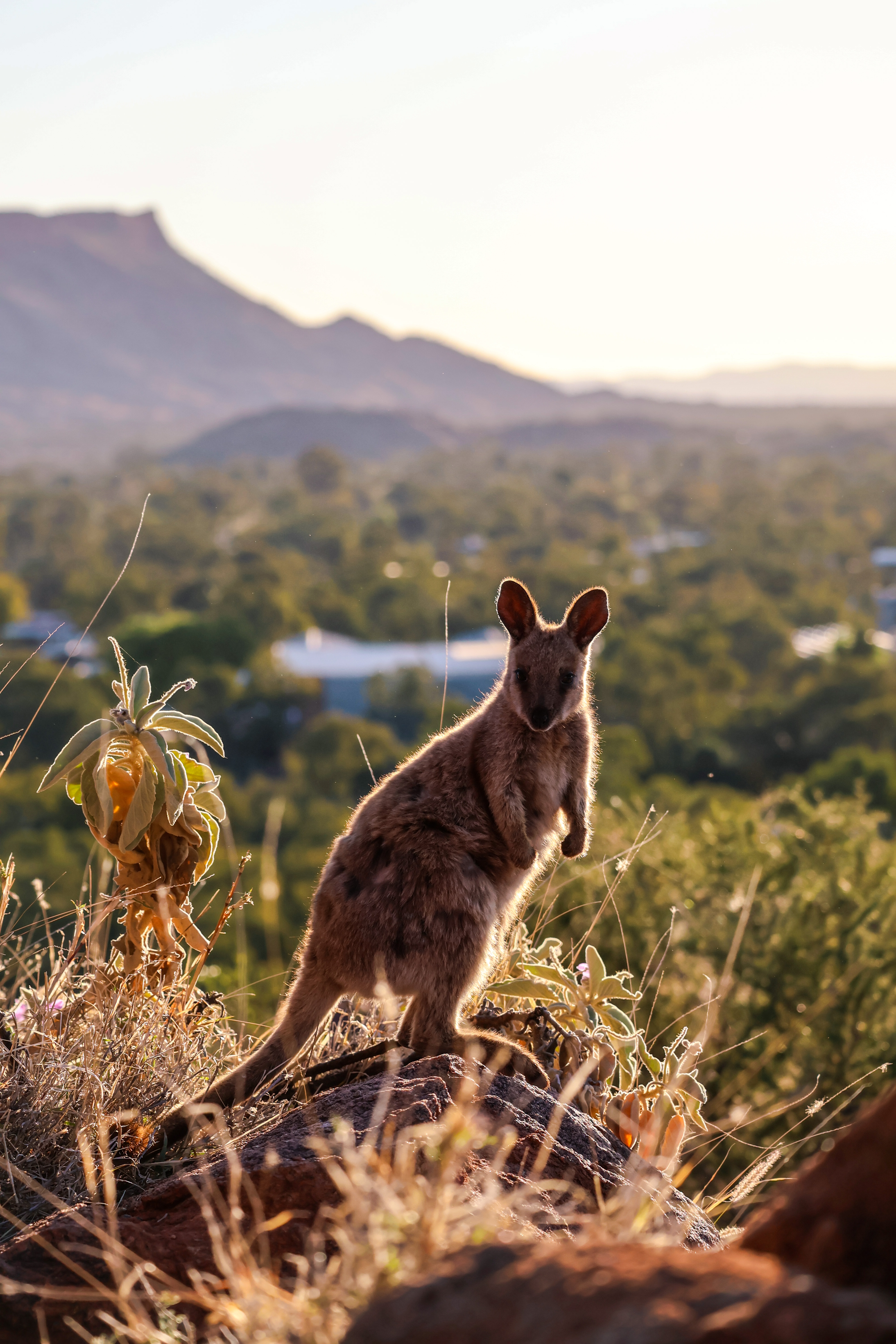 Een andere favoriete plek van ons om wilde Australische dieren te spotten zijn de Botanic Gardens in Alice Springs. Naast een prachtig uitzicht op Macdonnell Ranges en the Gap heb je hier een grote kans om in de late namiddag rock wallaby’s te spotten. Eén keer kwam een wallaby zelfs heel erg dichtbij toen we er samen met twee andere meiden heen waren gegaan om de zonsondergang te kijken onder het genot van een heerlijke pizza. De wallaby vond de geur waarschijnlijk erg lekker.