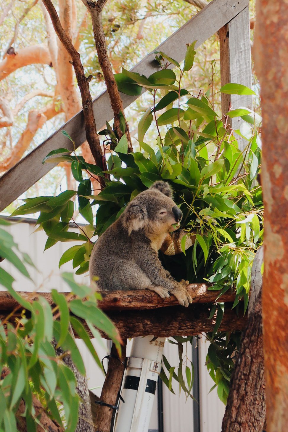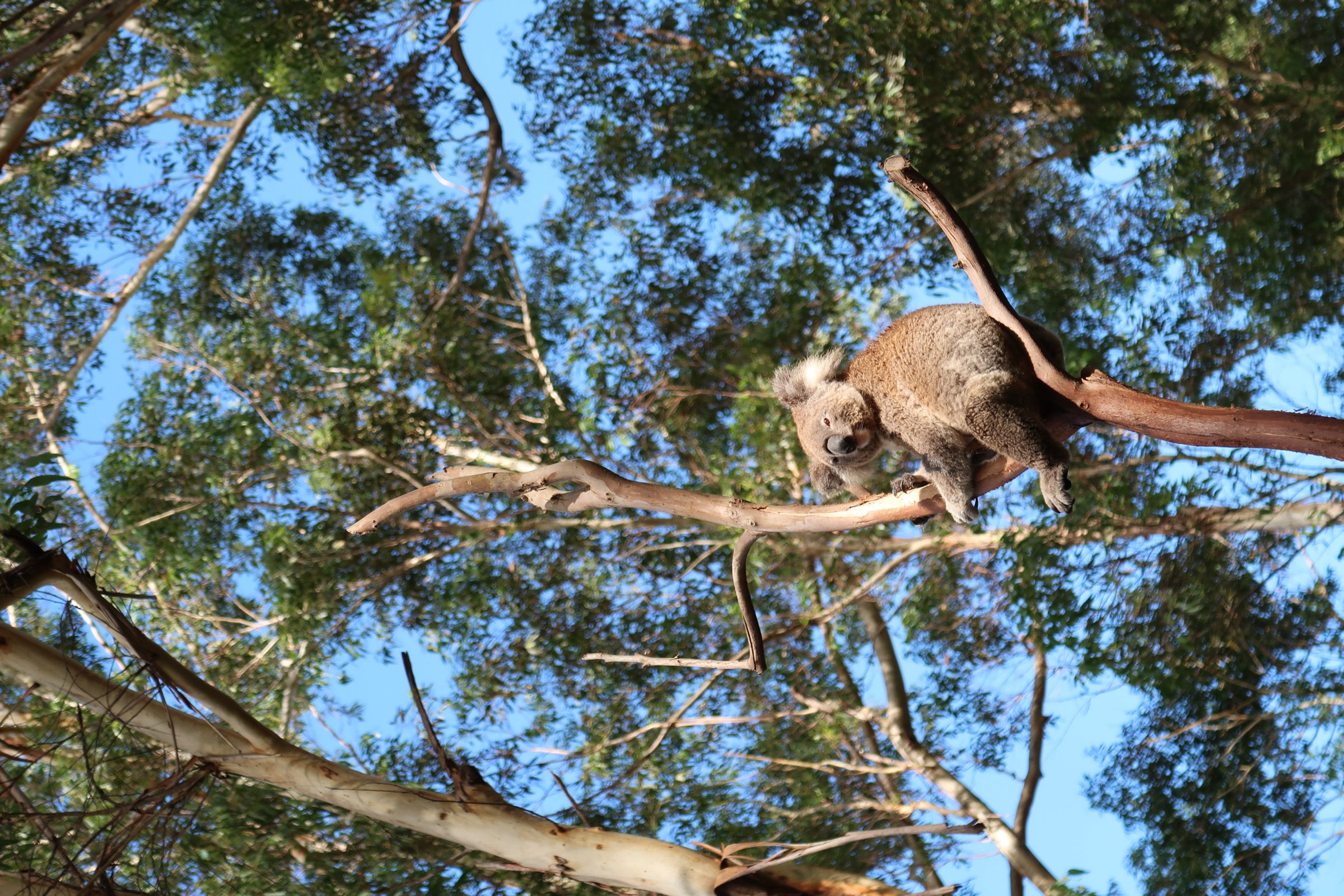 Raymond Island in de staat Victoria is volgens ons de beste plek om koala’s in het wild te spotten. Terwijl wij hier waren hebben we er wel meer dan 10 gezien, waaronder zelfs een moeder met haar baby. We vonden het extra leuk dat we de koala’s dit keer van wat dichterbij konden zien, omdat ze hier in wat minder hoge bomen zaten.
