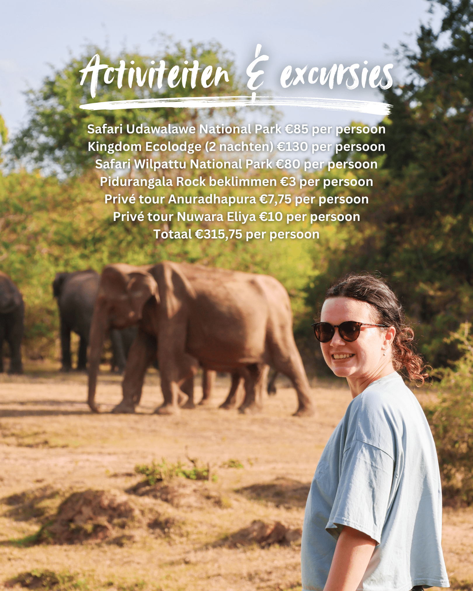 Naast het huren van de tuktuk waren de activiteiten voor ons de grootste kostenpost. Echter raden we het zeker aan om activiteiten te doen tijdens je reis door Sri Lanka omdat dit echt van toegevoegde waarde is. Om een beeld te geven hoeveel een activiteit nou kost geven we hieronder een overzicht van wat wij hebben gedaan:
