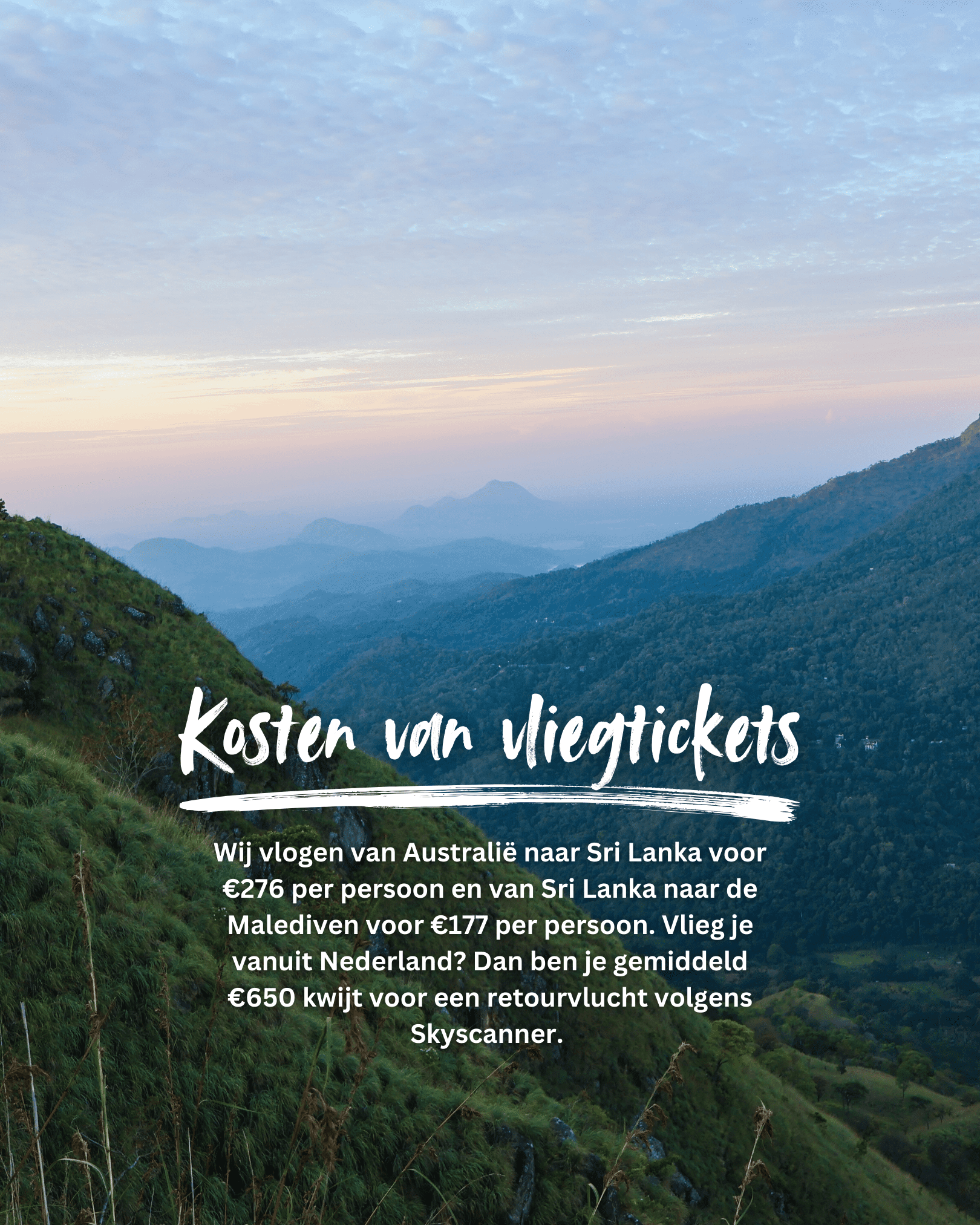Wij vlogen zelf vanuit Australië (Perth) naar Sri Lanka. Als je vanuit Nederland naar Sri Lanka gaat vliegen ben je gemiddeld volgens Skyscanner 650 euro kwijt aan een retourtje. Wanneer je in het laagseizoen gaat reizen kunnen deze prijzen lager liggen. Wil je geld besparen op je vliegtickets? Lees dan deze blog even hierna.